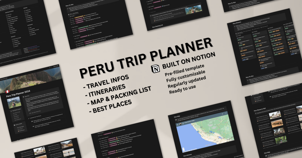 This Notion template is designed to help you plan your trip to Peru.